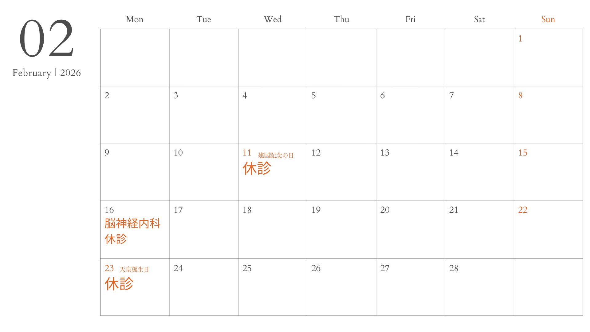 2月の外来診療のスケジュールです。